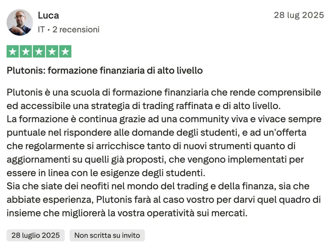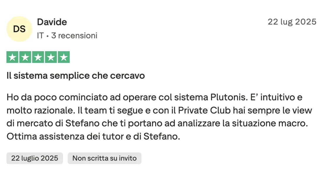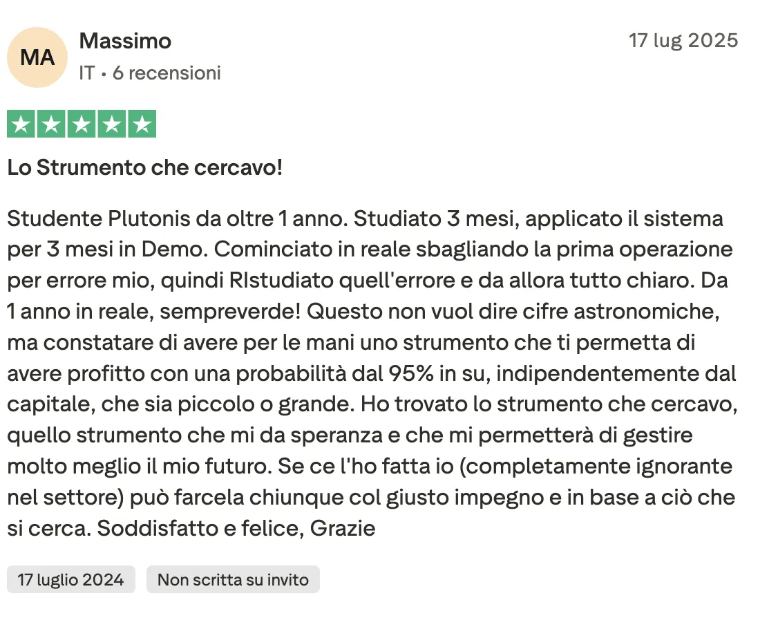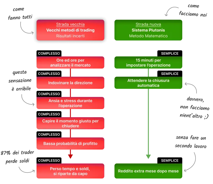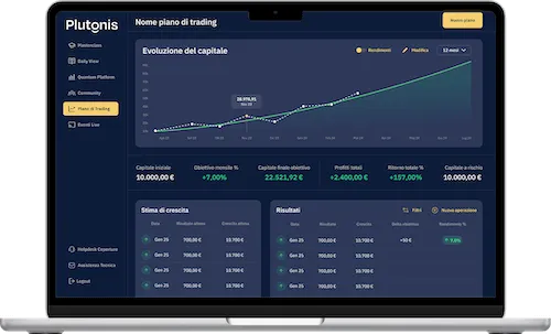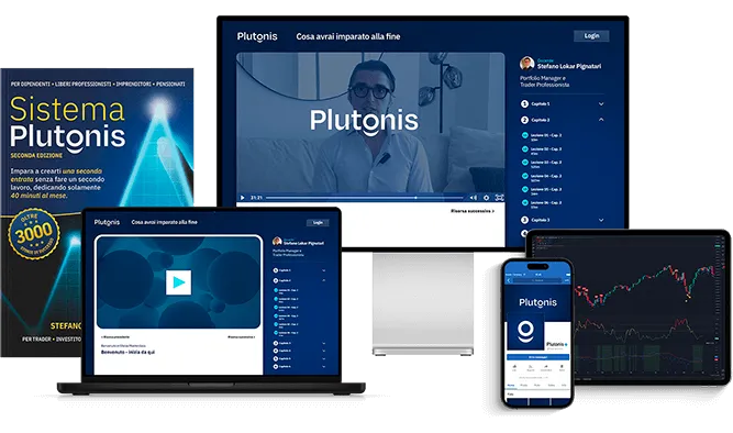 Il Sistema Plutonis è la soluzione ai problemi comuni del trading e degli investimenti. Grazie a questo sistema imparerai un approccio che ti permette di operare sui mercati senza dover investire continuamente tempo sui grafici, indovinare che direzione prenderà il mercato, essere continuamente coinvolto a livello emotivo, disporre di grandi capitali.