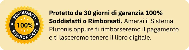 Ti rimborseremo i tuoi 27€ e ti lasceremo tenere l’ebook digitale del “Sistema Plutonis” gratuitamente.