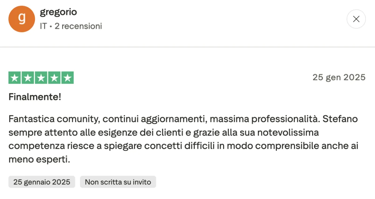 E, di conseguenza, trasformare un’attività complessa e stressante come il trading in un metodo meccanico, semplice e ripetibile, progettato per chi vuole costruirsi una competenza sui mercati senza stress.